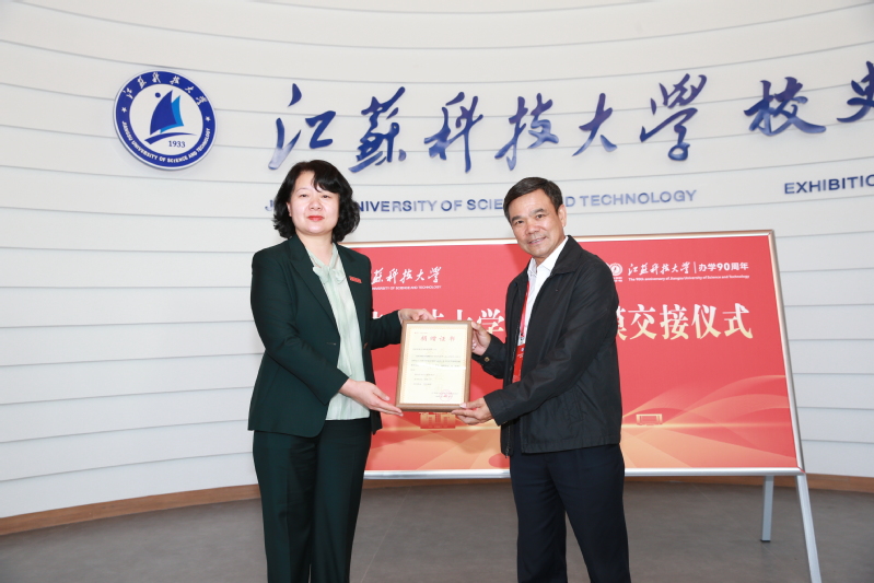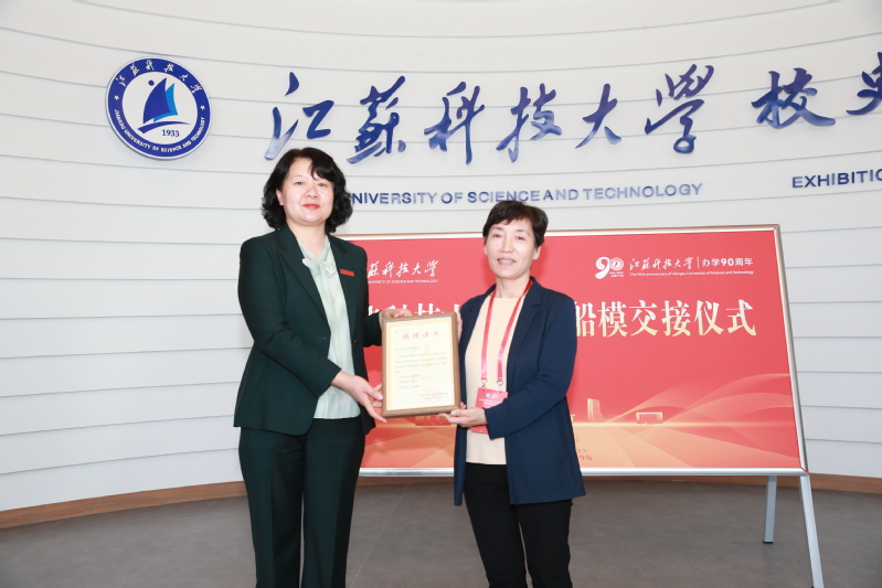 近日,学校在长山校区校史馆举行捐赠船模交接仪式。沪东中华造船(集团)有限公司党委副书记秦蓉、中船黄埔文冲船舶有限公司副总经理张俊雄、上海外高桥造船有限公司总工艺师刘建峰、江南造船(集团)有限责任公司总会计师汤玉军和江苏科技大学校长嵇春艳出席交接仪式,仪式由学校党委常委、副校长周宏根主持。