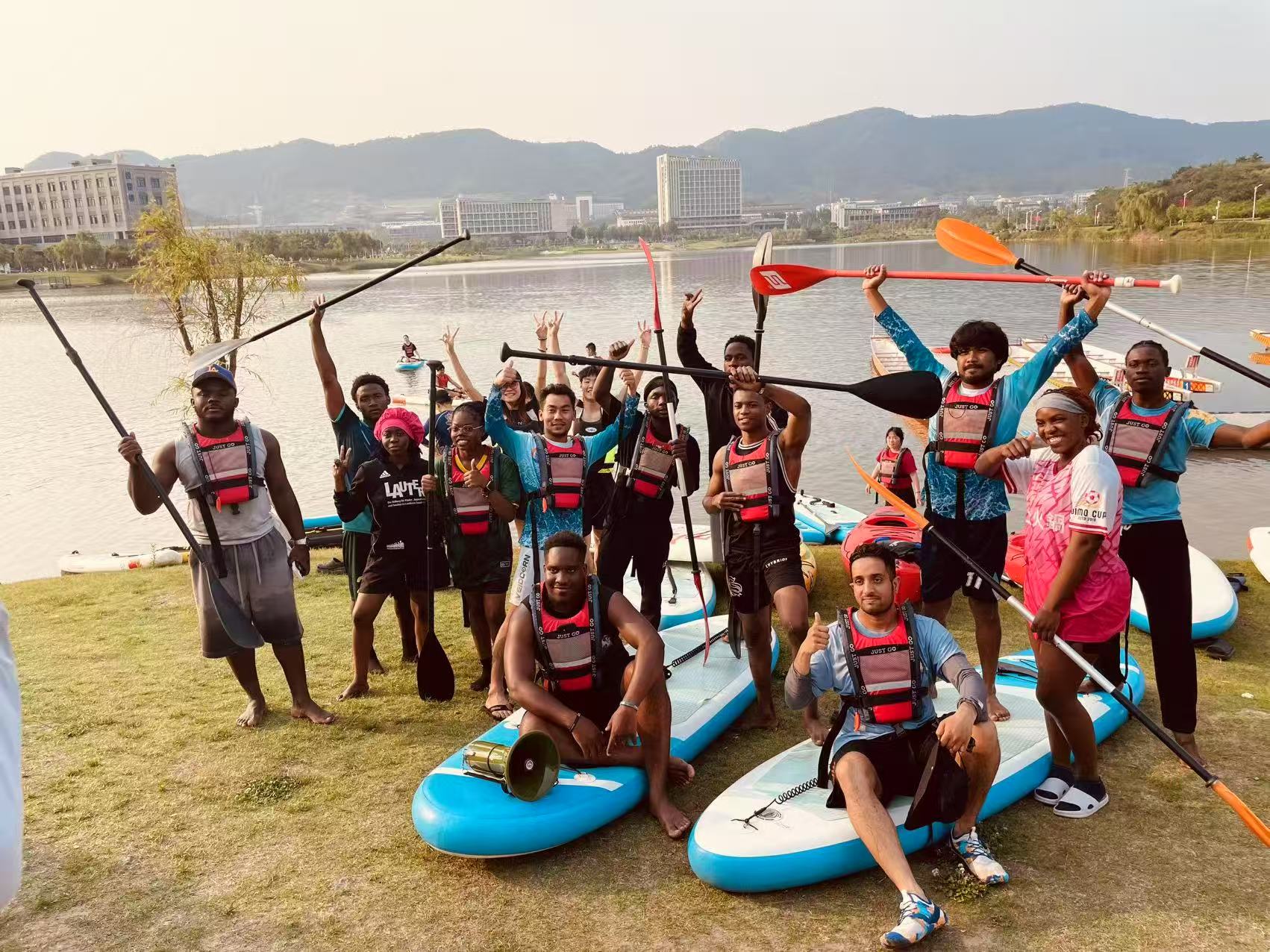 我校“同舟共济”水上运动中心依托校内天然水域资源,传承“船魂精神”校史文化,积极推广龙舟、皮划艇、桨板等水上运动项目。基地秉持“以水为媒、以体育人、以文搭桥”的理念,从“水上”向“陆地”延伸,着力打造面向中外青少年的“水陆双栖”中国国情教育平台。2024年,在基地举办的江苏省大学生龙舟锦标赛中,首次将来华留学生龙舟赛纳入省赛正式项目,我校荣获留学生组一等奖,并同期举办民族传统体育传承与发展学术研讨会;基地还定期举办水上运动会、龙舟师生联赛及中外学生友谊赛等活动,吸引了众多来华留学生逐浪竞技,反响热烈,备受好评。2025年,依托该基地培训组建的江苏科技大学留学生龙舟队在“感知中国——第十五届上海高校暨第三届长三角高校外国留学生龙舟赛”中表现优异,勇夺亚军,为学校赢得了广泛赞誉。
