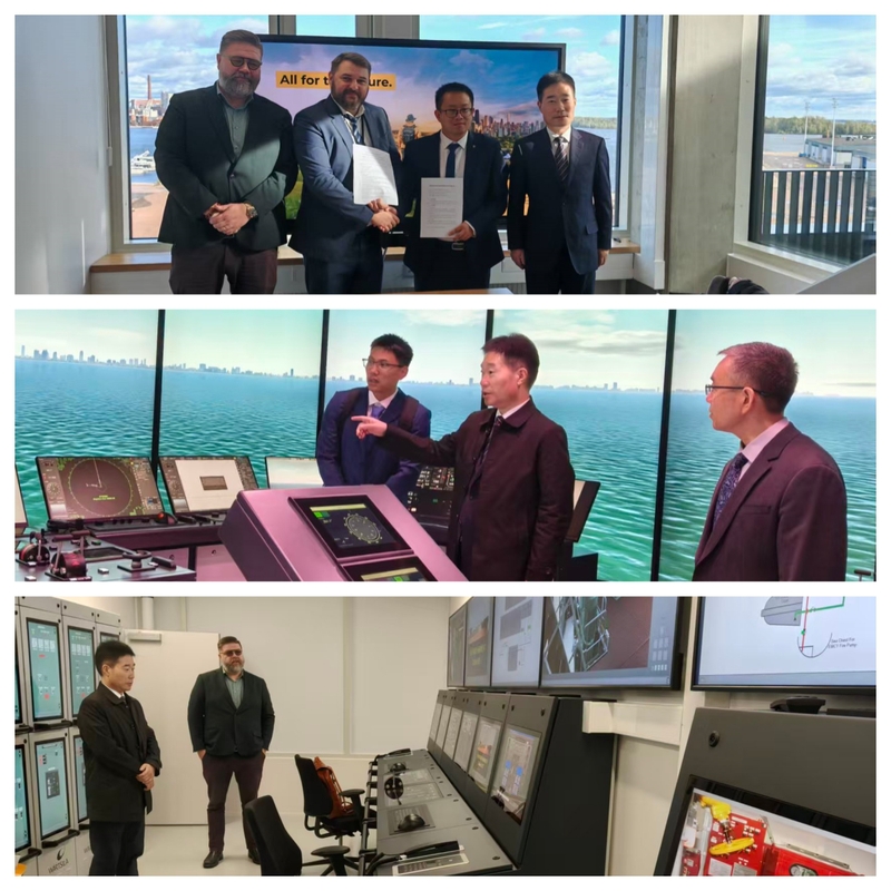 出访团在芬兰首站访问了东南应用科技大学(South-Eastern Finland University of Applied Sciences),并与该校教学副校长Olli-Pekka Brunila,国际处副主任Greg开展了深入的交流会谈。双方围绕开展联合培养、双学位项目、教师与学生短期互访、科研项目合作等内容进行了讨论。在双方领导的共同见证下,两校国际处签署了合作备忘录,这也标志着我校在芬兰打开了国际合作新篇章。出访团一行还参观了该校Kotka校区的模拟航海仓、数字教室、多功能医护实训中心、实验室等。