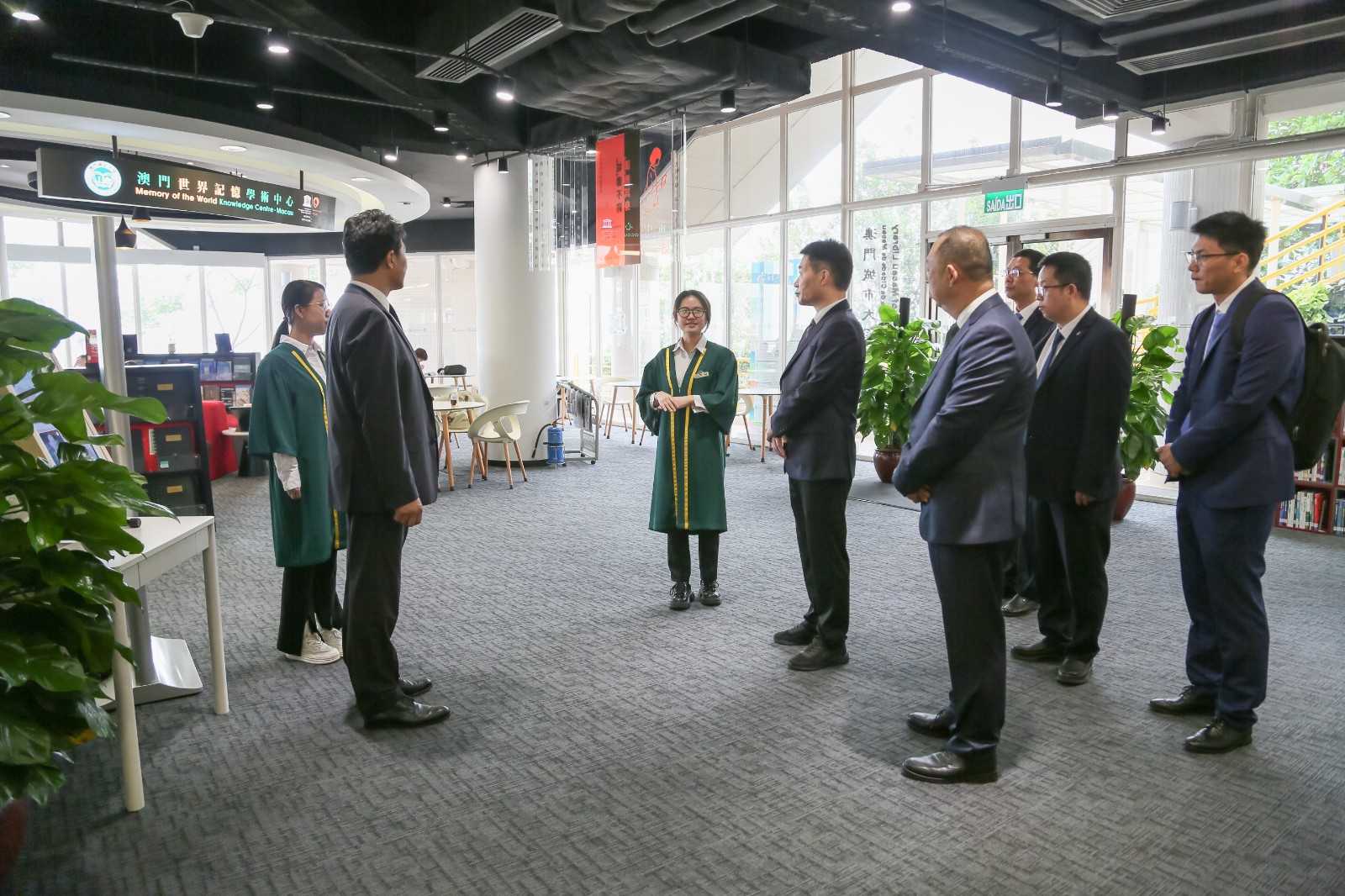 在澳门科技大学,出访团与李行伟校长、国际学院王婷主任、研究生行政院冯钧国主任、创新工程学院卢小平主任展开会谈,并签署了合作协议书,双方一致同意推动学生互访、课程共建、联合申报国家级科研项目,共同服务国家科技自立自强战略。随后,出访团调研了该校“全球地图中的澳门”特展及中药机制质量全国重点实验室。